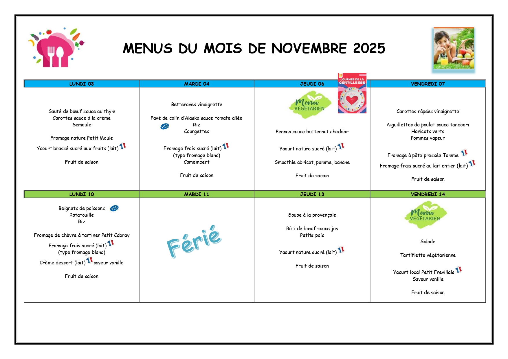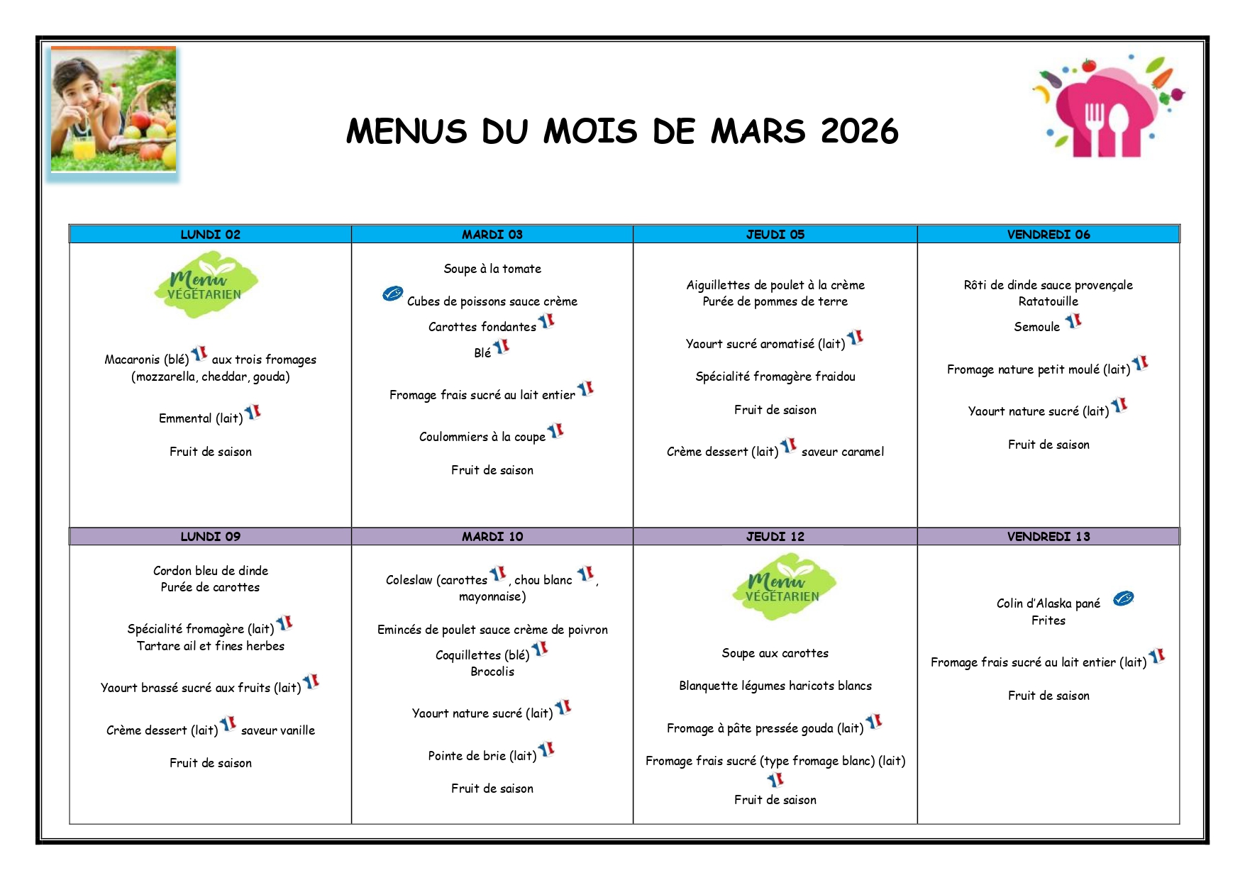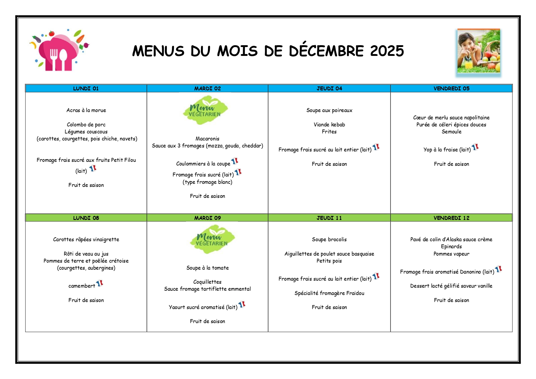 Un service de cantine est proposé tous les midis aux enfants fréquentant l’école et aux enseignants.